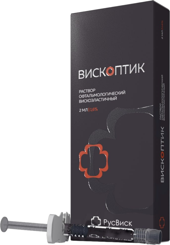 Показания: Материал вискоэластичный вископтик® показан для использования при проведении хирургических процедур на переднем отрезке глаза при удалении катаракты и имплантации интраокулярной линзы (ИОЛ). Материал вискоэластичный вископтик® поддерживает объем передней камеры, улучшает визуализацию во время операции, позволяет снизить риск повреждения эндотелия роговицы и других прилежащих тканей глаза. вископтик® помогает сохранять нормальное положение стекловидного тела, препятствуя схлопыванию передней камеры во время операции.