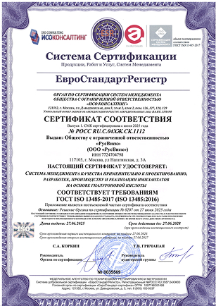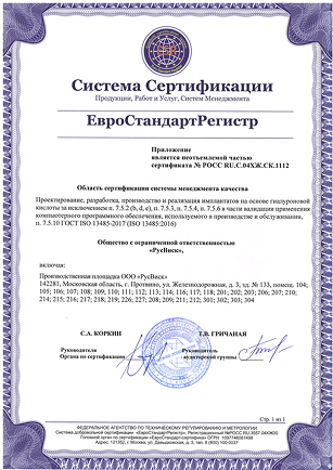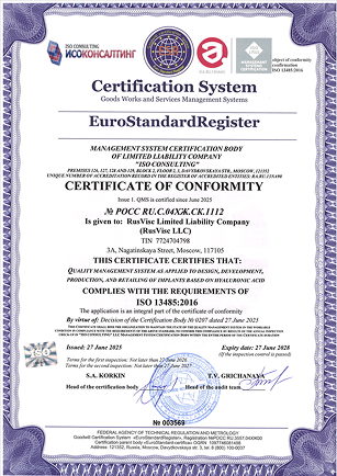 Вязкоэластичный эндопротез синовиальной жидкости «Русвиск Форте» регистрационное удостоверение на медицинское изделие от 11 октября 2022 года № РЗН 202218518.