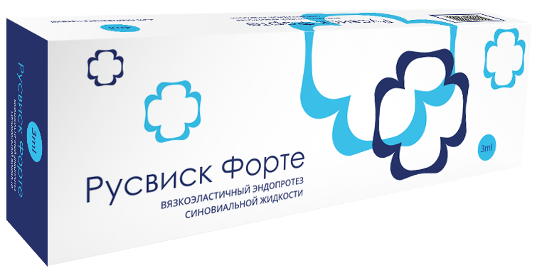 Вязкоэластичный эндопротез синовиальной жидкости «РусВиск Форте» 3.0 мл. по ТУ 32.50.22–007–61651289–2021 предназначен для симптоматического лечения остеоартроза коленного, тазобедренного и других синовиальных суставов дегенеративно-дистрофического или травматического происхождения.